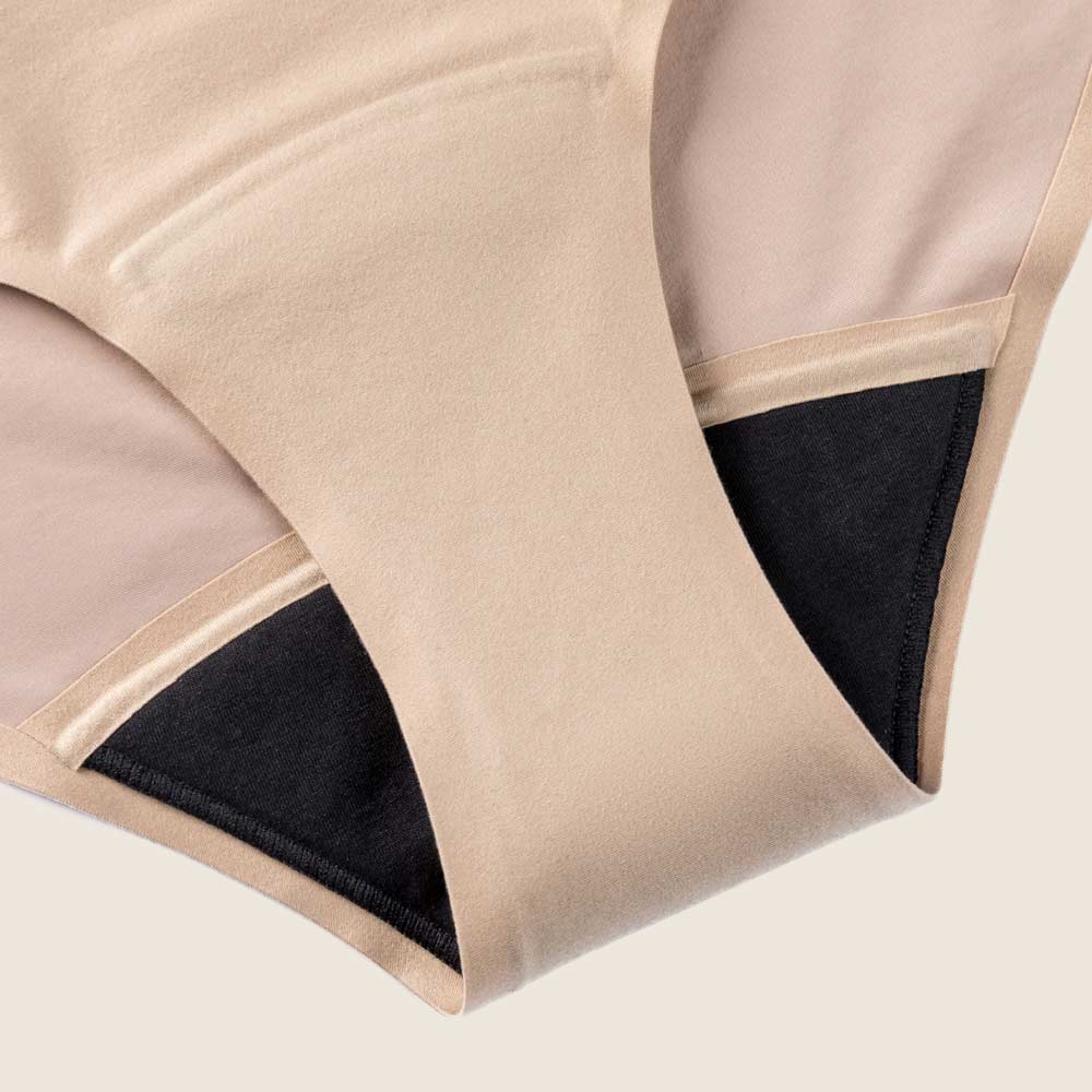 Our undies have an organic cotton inner layer in the crotch - the one touching your skin - that is wicking the liquid inside very quickly (so that you also feel dry!). Once the liquid reaches the second layer made of microfiber, the PHBV/PLA inside works on fighting bacteria and odors to keep you fresh and odor-free.
